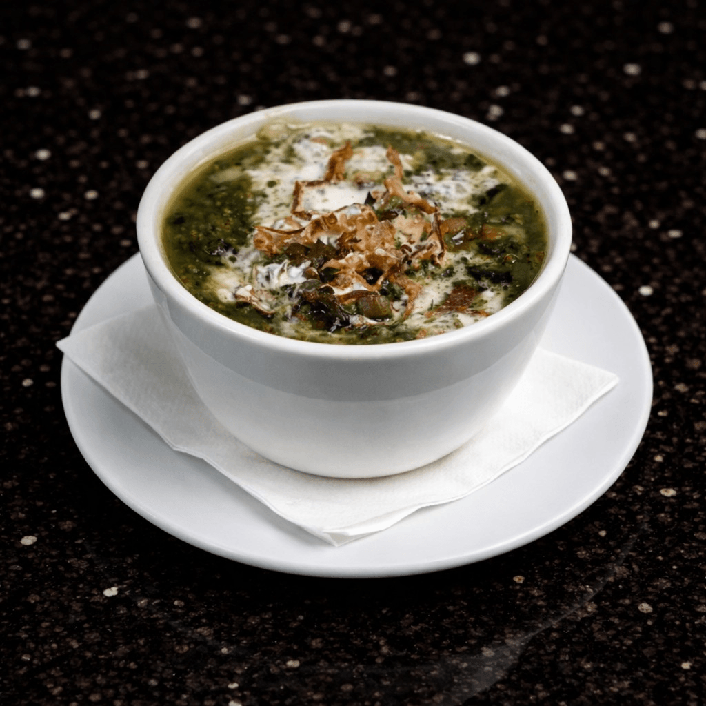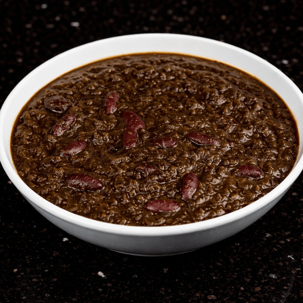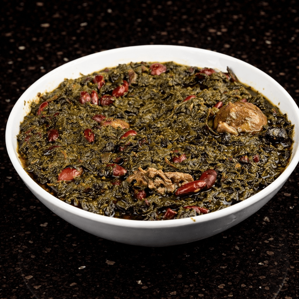 A mixture of chopped parsley, green onions, cilantro, and fenugreek sautéed to perfection, simmered with sundried lime and red kidney beans