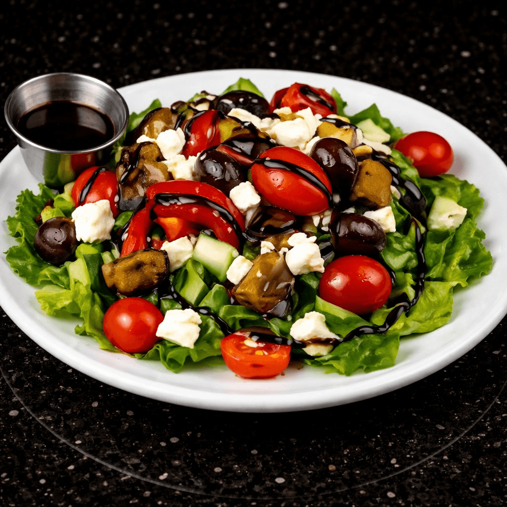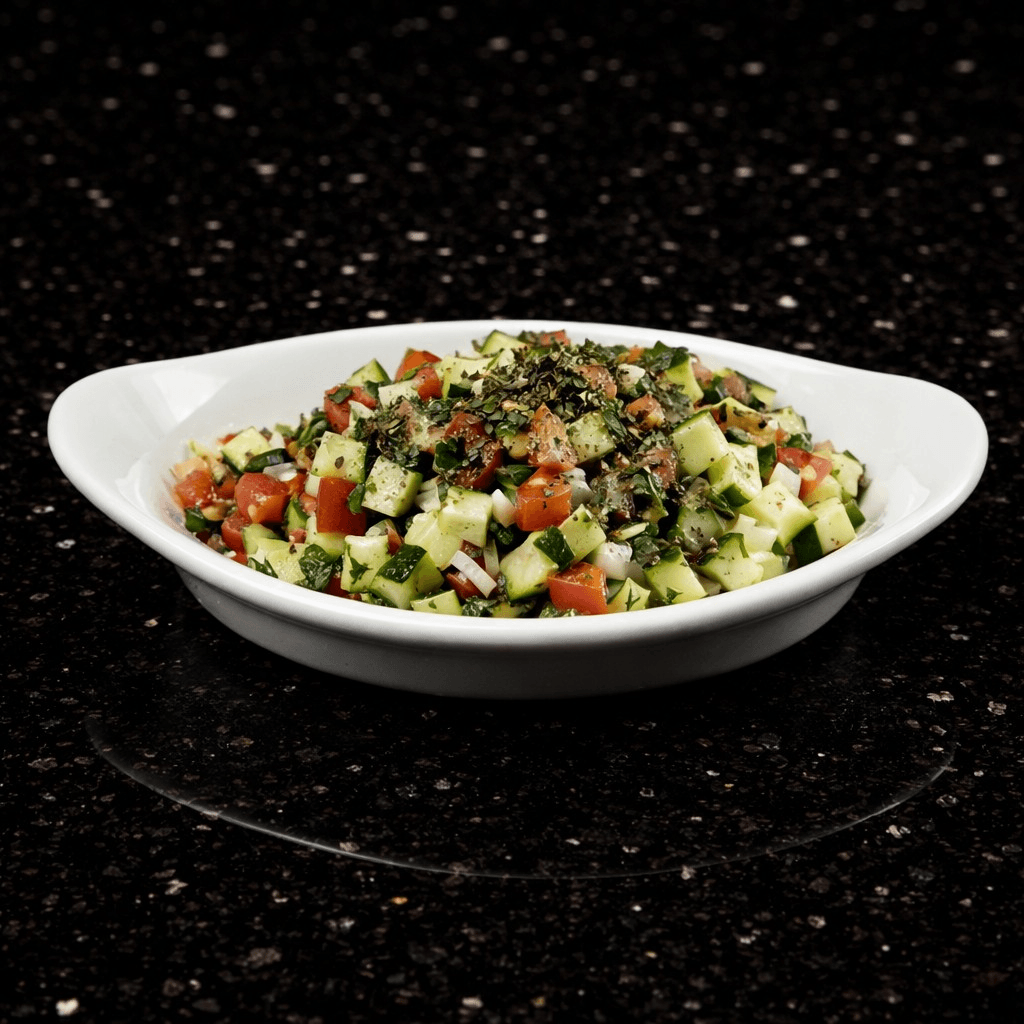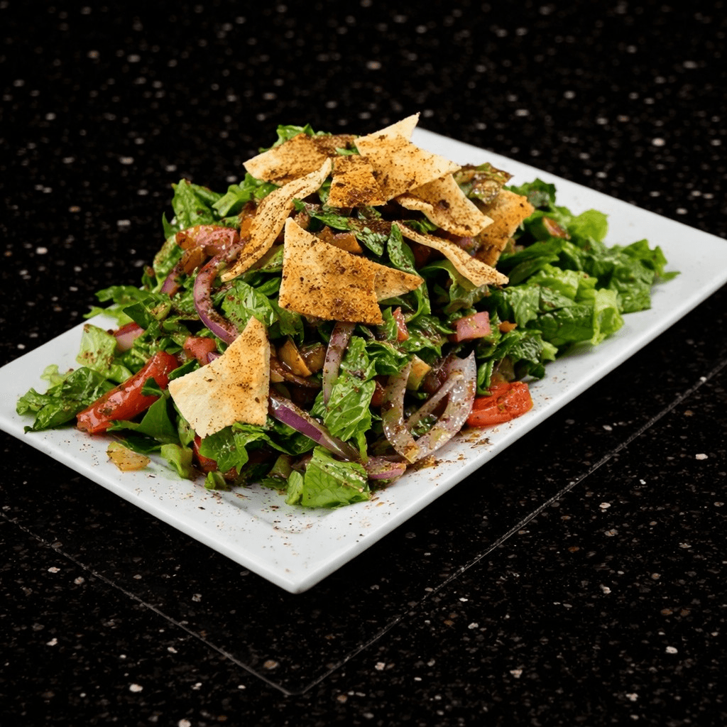 Romaine lettuce, cucumber, tomatoes, and crispy pita bread tossed with sumac vinaigrette