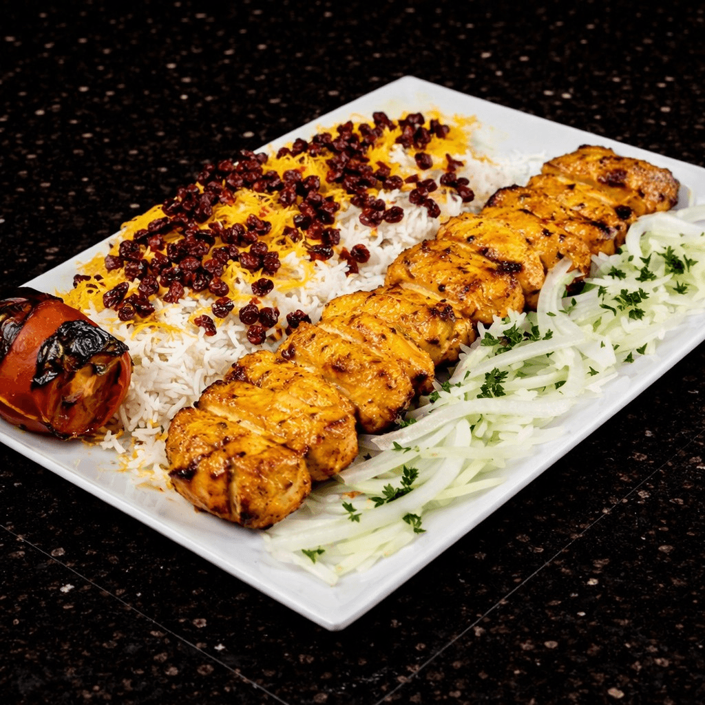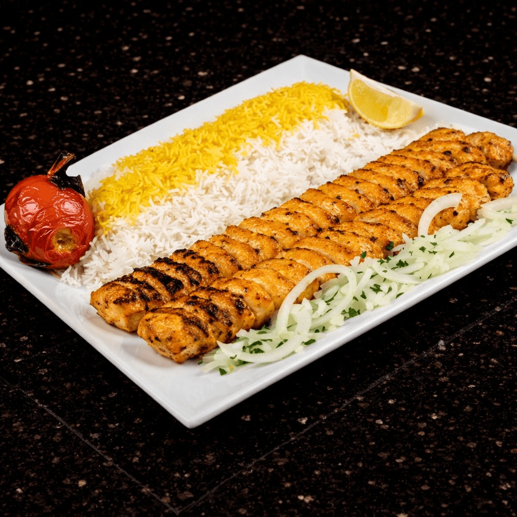 Chicken tenderloin. succulent cubes of boneless chicken tenderloin, marinated in our signature persian spices and herbs