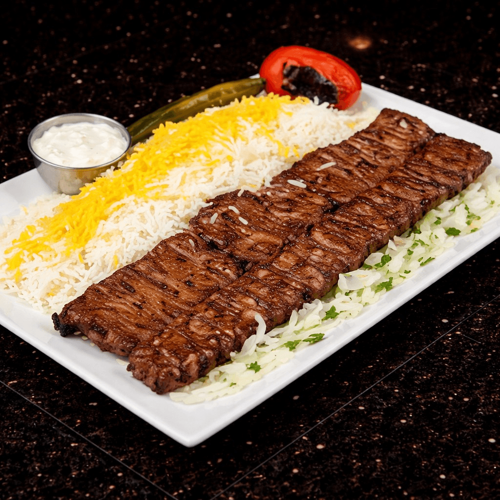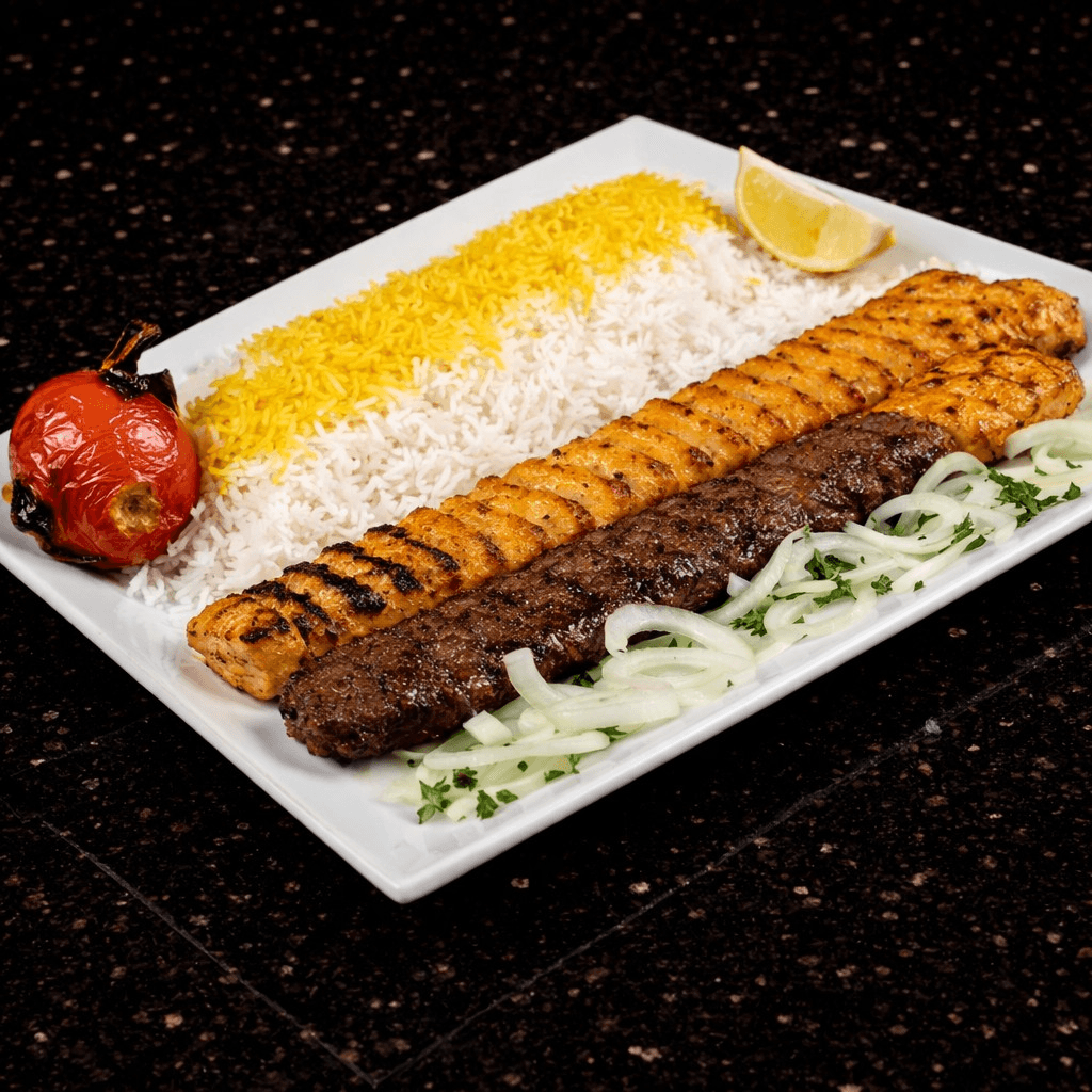 Premium combo of tender koobideh (ground beef kabab) and 8 oz prime filet mignon, fire-grilled to perfection