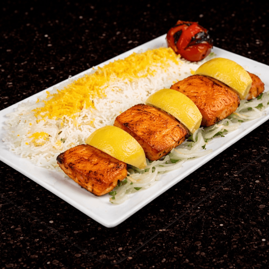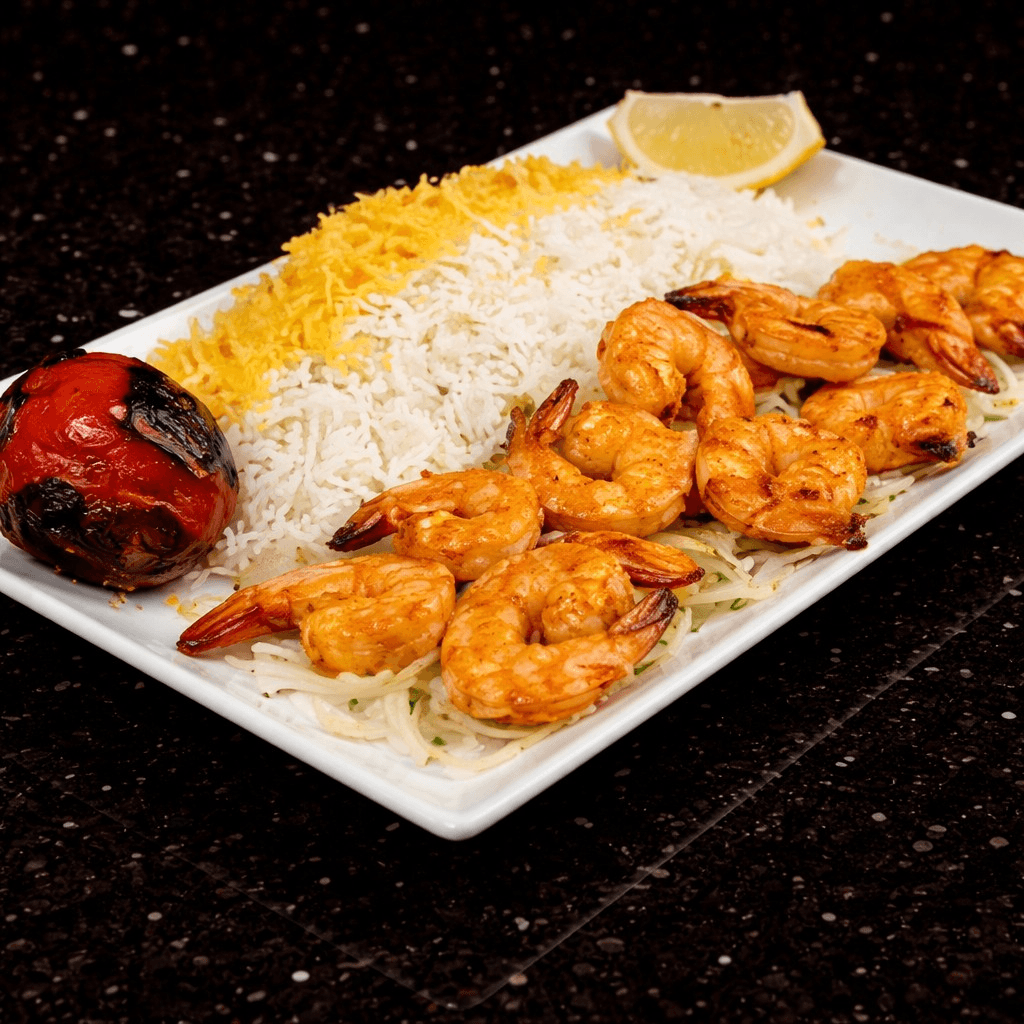 Generous mix of (3) skewers of beef koobideh, (3) chicken koobideh, and (1) chicken breast kabob, paired with (2) portions of aromatic basmati rice. serves 2-3 people